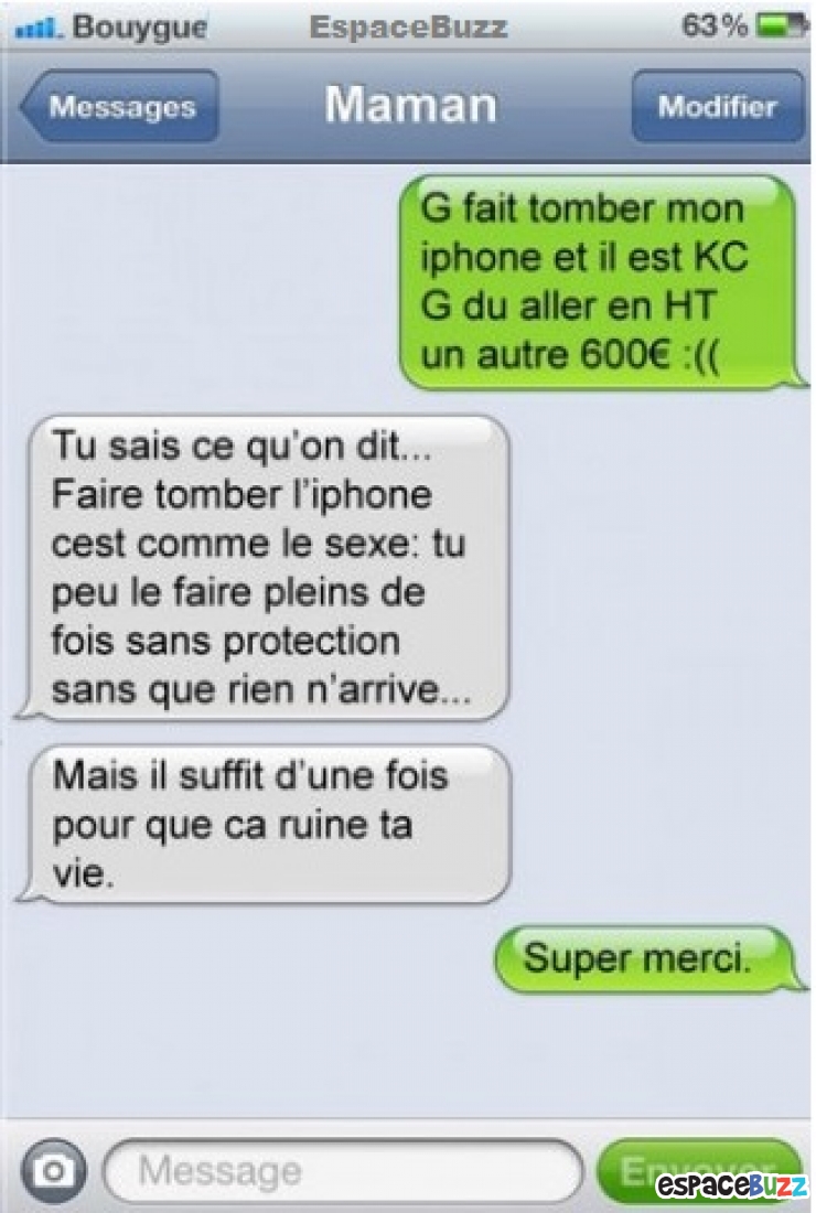 Quand Maman fait des sms et donne des conseils par la même occasion....ça donne ça! Ceci dit, le message est très important! Vos parents sont aussi marrant quand ils vous envoient des sms?