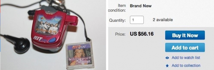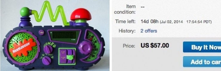 J'en avais un en forme de chaîne Hi-fi bleue. Elle n'avait qu'une seule cassette avec une seule musique, mais on l'emmenait partout (à l'époque c'était plus pratique que les walkmans). Bref, vous pouvez le vendre pour 50 € sur eBay.