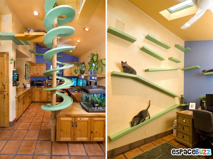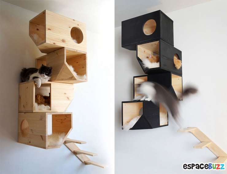 Des créateurs visiblement amateurs de chats ont eu la bonne idée de concevoir des meubles originaux taillés pour faire le bonheur des félins à la maison.