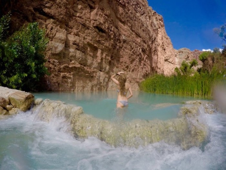 Havasu obtient sa splendide couleur bleue du magnésium présent dans l’eau. Plus les bassins sont profonds et plus le carbonate de calcium est libéré. Le bleu de l’eau est donc de plus en plus présent car la teneur relative en magnésium augmente.